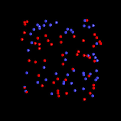| Electrons (blue balls) and holes (red balls) show random thermal motion before the terahertz pulse hits the sample. | |